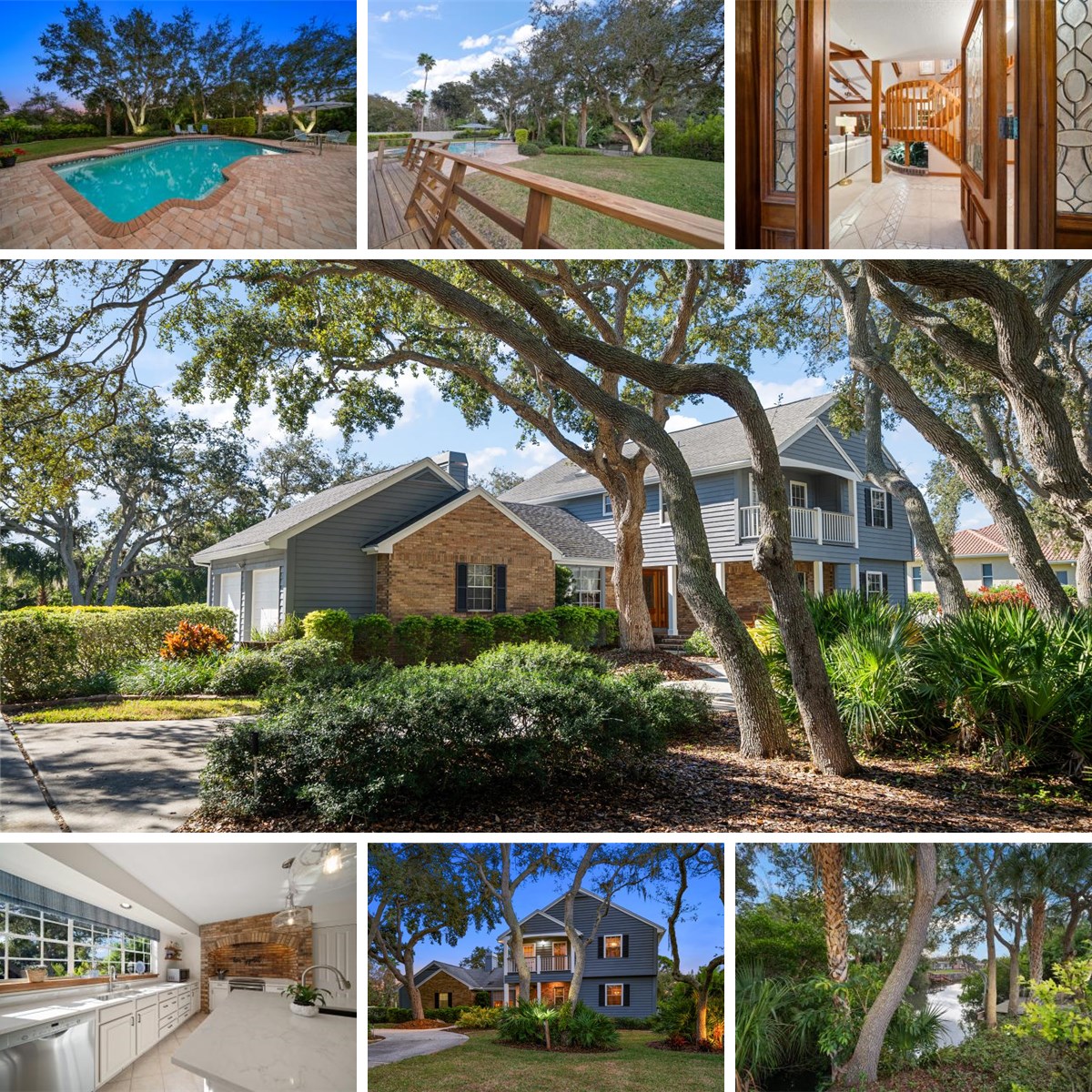A rare opportunity becomes available to own this timeless property offering a one owner custom residence on a premier .70-acre lot with outdoor areas that mirror a private sanctuary. An inviting front porch beckons you through the leaded glass door entry where one can appreciate a home designed with the modern family in mind. The floorplan separates social life from rest with its desirable “all-up” bedroom configuration. Vaulted beamed ceilings, impressive natural wood moldings, built-ins with integrated storge, inviting floating staircase and French doors that capture the private backyard paradise reconfirm that this property is exceptional! The resort-style pool surrounded by attractive brick pavers adjoins expansive green space, fenced for worry free usage by children and pets. This residence features an observation deck overlooking a small saltwater canal with direct access to the intracoastal. Most notably, the home and grounds maintain no history of rising waters or storm damage. Designed for a serious chef or entertainer, the kitchen is clearly the heart of the home. A contemporary center island is the focal point for family gatherings or culinary experiences and abundant cabinetry, smooth stone counters, custom brick surround wall complement this area so rich in natural light. Formal dining and living areas, breakfast nook, and a spacious family room overlooking the lush private backyard and pool complete the ground level living area. Upstairs bedroom quarters of 4 include a large primary suite with lovely bath and walk in shower, a Juliette balcony off of a bedroom and skylights that capture natural light all year. Located in the quiet neighborhood of Indian Springs just minutes to exquisite beaches and major access roads to Tampa, St Pete and Clearwater, this is a gem of a property where space meets lifestyle and families grow and create memories to last a lifetime!